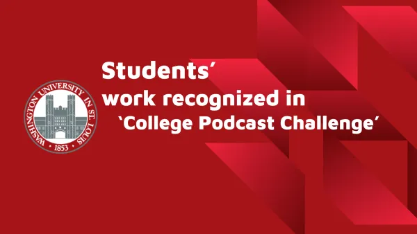 Olivia Poolos Work Recognized in "College Podcast Challenge" 5.3.22 | Awards and Notables , Students Share A podcast created by two Washington University in St. Louis students was among 10 finalists in the “College Podcast Challenge” from National Public Radio. Read more about the College Podcast Challenge Here